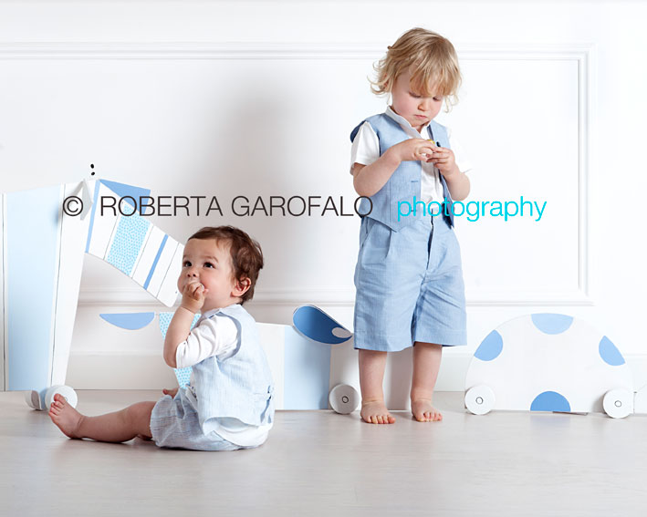 Il mondo dei bambini è fatto di passioni improvvise e amori genuini, di giochi e di mutamenti improvvisi, tanto che è difficile riuscire a capire con grande anticipo come ci si dovrà confrontare. Non appena sono arrivati con le mamme al seguito, per un attimo ho temuto che avrei faticato a trovare le giuste composizioni fotografiche ( QUI qualche consiglio su come comporre una foto con bambini) Invece, le mamme sono state bravissime: li hanno fatti ballare, cantare e mi hanno dato modo di coglierli in espressioni di sincero divertimento. (QUI link a un post su come divertirsi in un set fotografico e l’intesa familiare) Il set scelto è stato essenziale, per dare il giusto risalto ai vestiti. La regina dei giochi sulla scena è stata la carovana in legno costruita apposta per l’occasione da Emanuela Solaroli la mia supercreativa dalle mani d’oro che realizza abilmente ogni mio desiderio artigianale: è lei che realizza i cuori in gesso profumato per le gift box (QUI il post e qualche foto). E’ il logo di HANAPIMA fatto gioco, che i bambini hanno apprezzato moltissimo e che le stiliste hanno adorato.